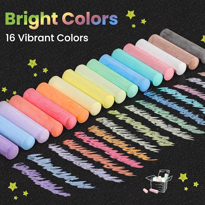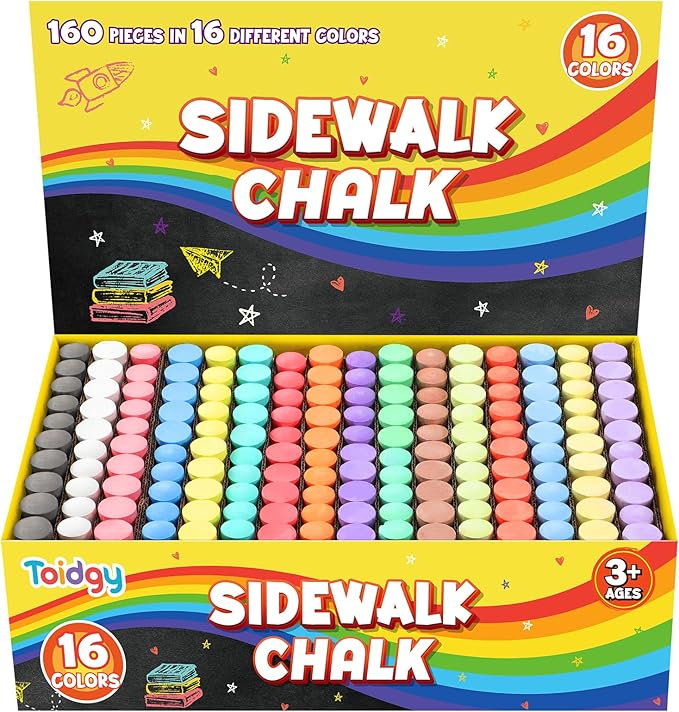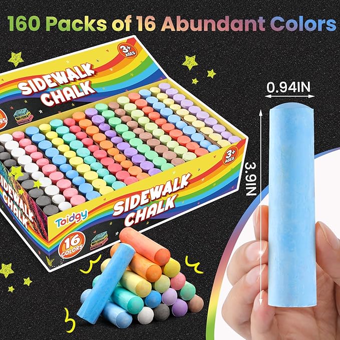 160 PCS Washable Sidewalk Chalks Set for Kids, 16 Colors Non-Toxic Jumbo Sidewalk Chalk Bulk for Outdoor Art Play, Painting on Chalkboard, Blackboard and Playground, Kids Outdoor Toys