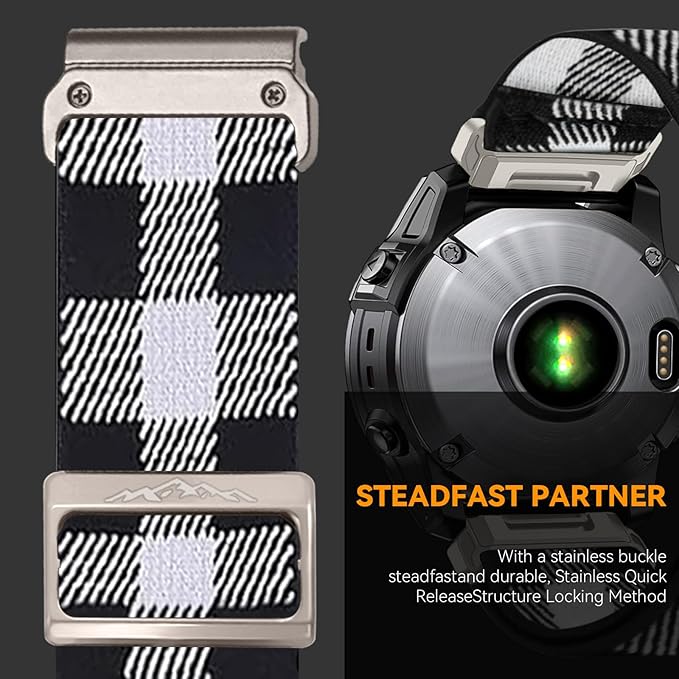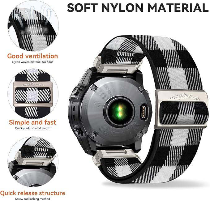 • 【User-Friendly Material】Compatible with Garmin Fenix 7/7 Pro/Fenix 6/6 Pro/Fenix 5/5 Plus Band Elastic Nylon Braided Strap is made of high quality stretchy nylon, super soft and lightweight, breathable and comfortable. This eco-friendly nylon and the sweat-absorbing property make this strap super skin-friendly.
