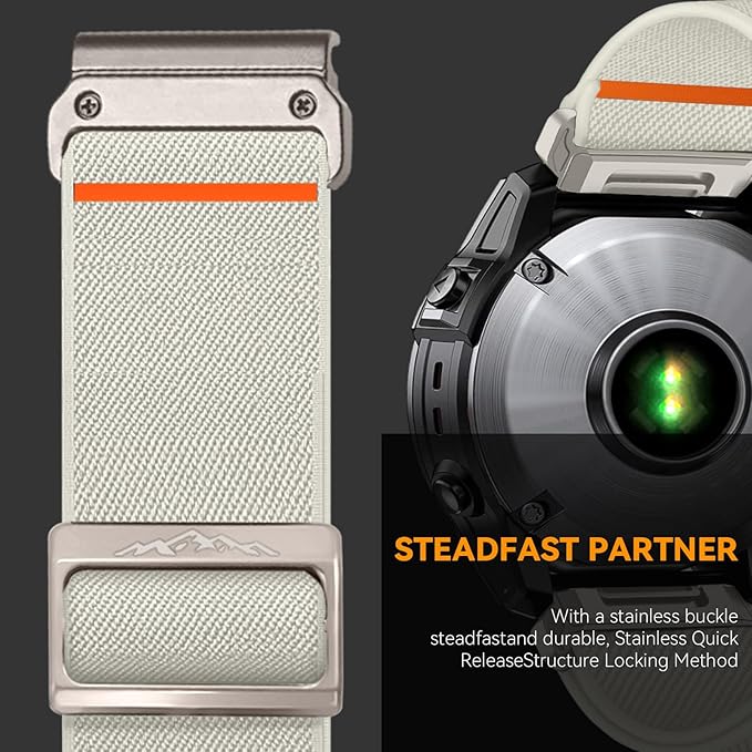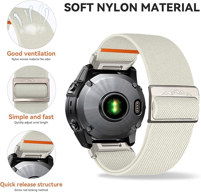 - 【User-Friendly Material】Compatible with Garmin Fenix 6x/Fenix 5x/Fenix 7x bands elastic nylon braided strap is made of high quality stretchy nylon, super soft and lightweight, breathable and comfortable. This eco-friendly nylon and the sweat-absorbing property make this strap super skin-friendly.
