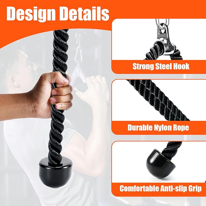 - Universal Design - The stainless steel buckle design equipped with this triceps rope is suitable for most standard fitness equipment and can be connected to a universal fitness system, making it a multifunctional supplement tool for fitness equipment.
