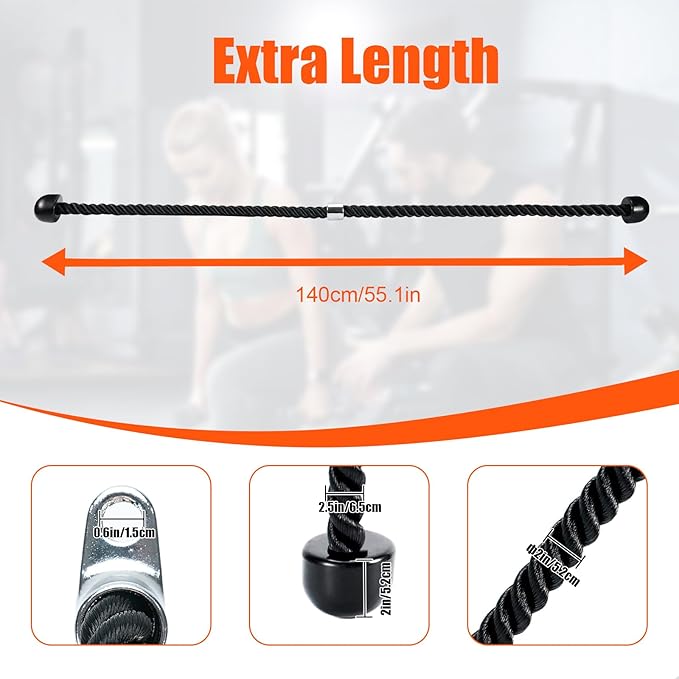 - Suitable Size - This triceps rope is twice the standard length, 55 inches in length, and includes 2x2x2 inch double D row handle. This perfect combination of fitness equipment can provide a wider range of motion during exercise.