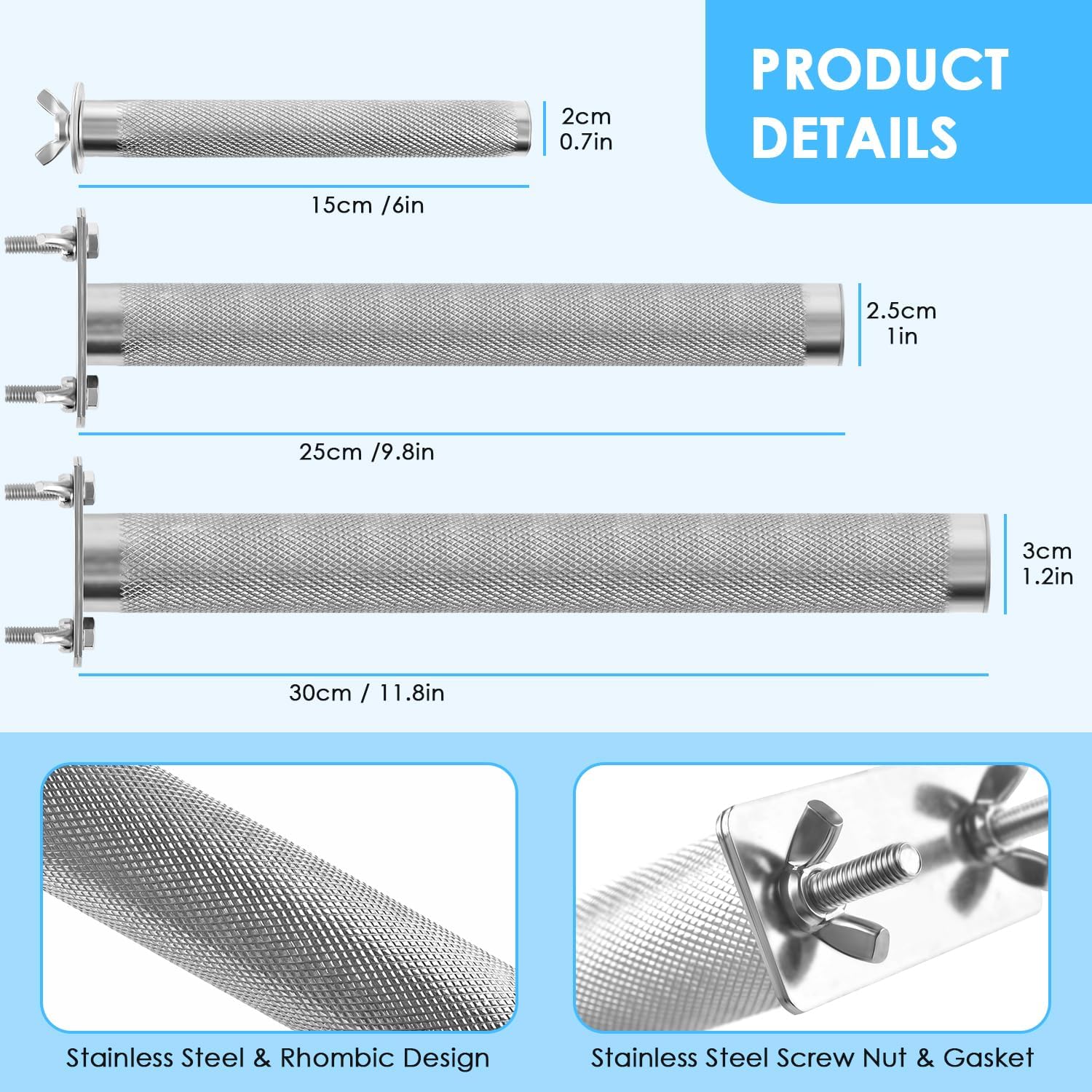 - Versatile Perch: This stainless steel parrot perch with a rough surface provides an ideal spot for small to medium birds like conures, parakeets, african grey parrots, amazon parrots to climb, play, exercise and rest