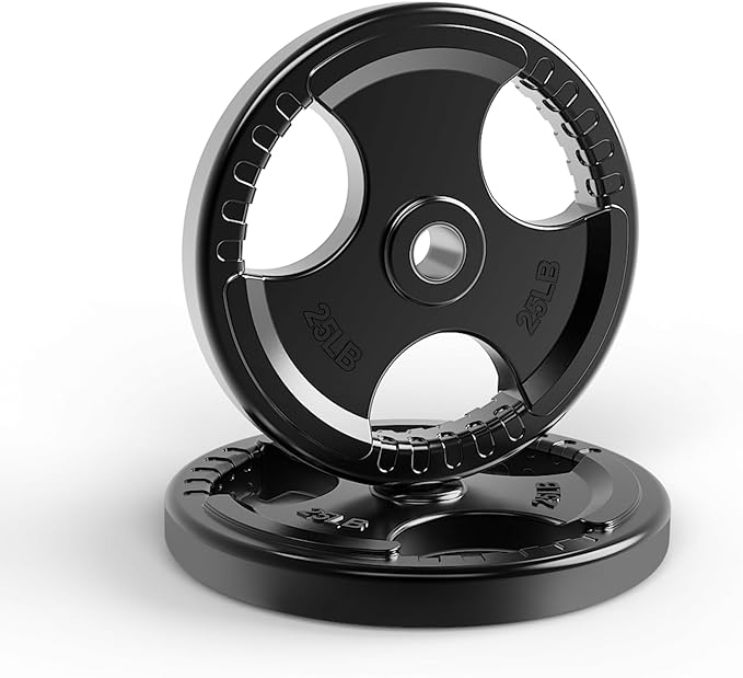 - Comfortable and Convenient: Each plate has 3 openings with strips on them for easy and secure grip when loading and unloading the weights. Labeled in LB for easy recognition.