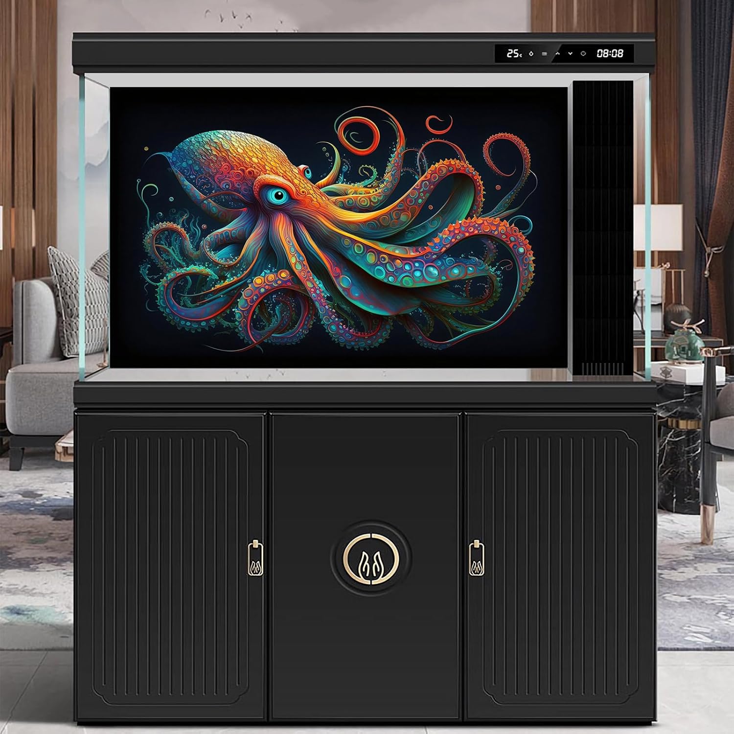 Octopus Aquarium Background Abstract Colorful Octopus Terrarium Background Glowing Octopus on Black Background Fish Tank Backdrop Poster Wallpaper Decorations Vinyl 24x12in