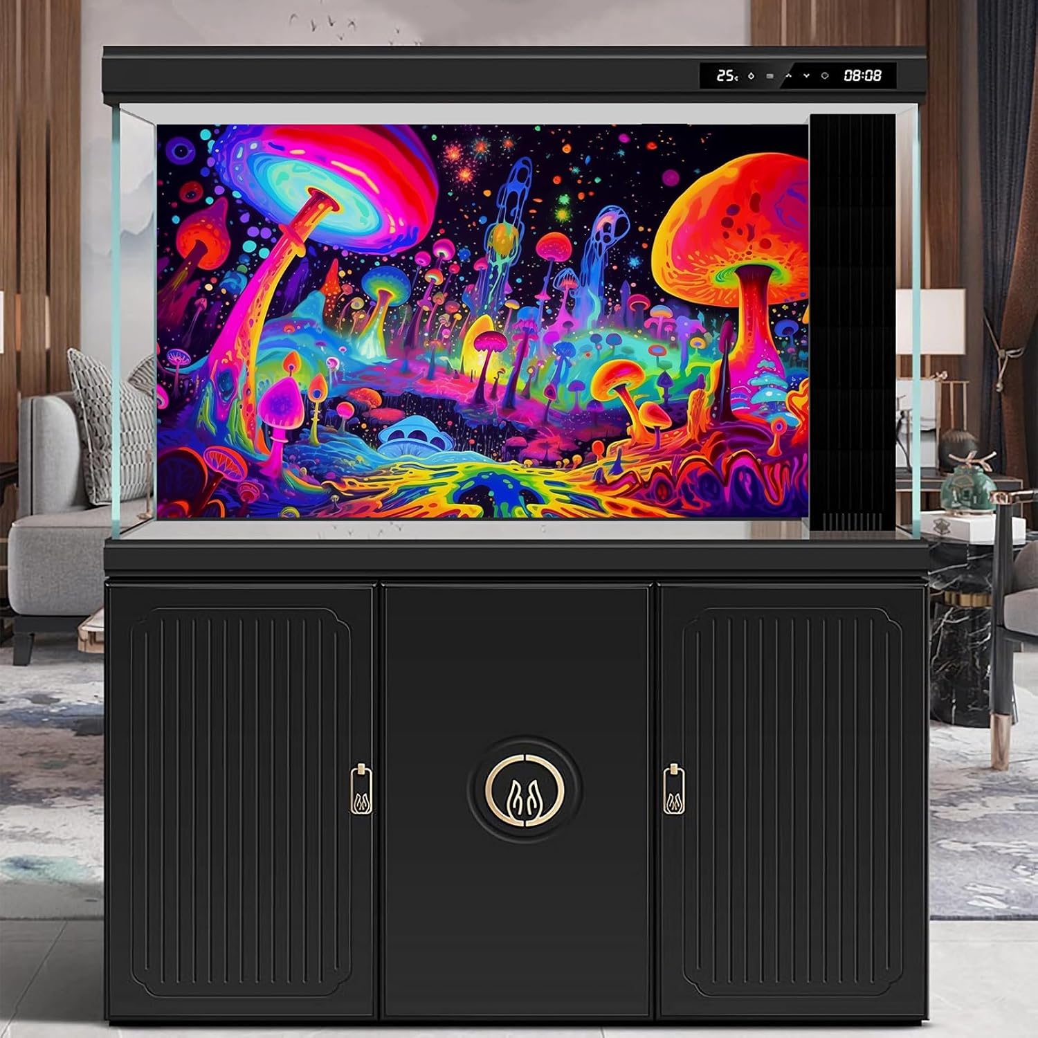Fantasy Mushrooms Aquarium Background Abstract Mysterious Mushroom Landscape Terrarium Background Amazing Rainbow Mushrooms Theme Fish Tank Backdrop Poster Wallpaper Decorations Vinyl 48x18in