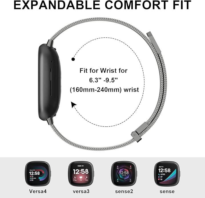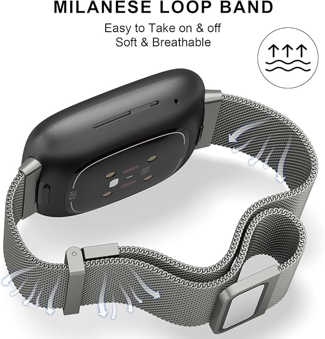 - 【Comfortable Material】These Fitbit Sense 2 / Fitbit Versa 4 bands are made of fashionable woven mesh stainless steel, mesh design makes this band more breathable and lightweight, comfortable to wear and skin-friendly, sweat & water resistant, breathable and lightweight. It bring you a comfortable wearing experience, personalize your fitbit Sense 2 / Fitbit Versa 4 Smart Watch. Very soft and comfortable to wear.
