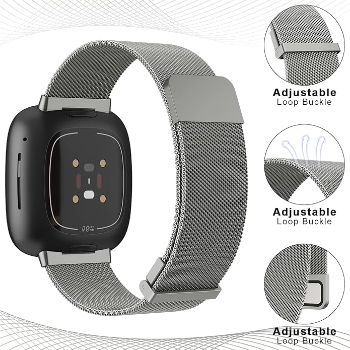 - 【Unique Magnet Clasp Design】One Size fit for 6.3" - 9.5" (160mm-240mm) wrists. The clasp are made of stylish metal. No buckle needed, easy to stick and lock your fitbit versa 4 bands. Band size can be freely adjusted according to the circumstance of individual wrist. Strong Magnetic buckle keeps band secure.