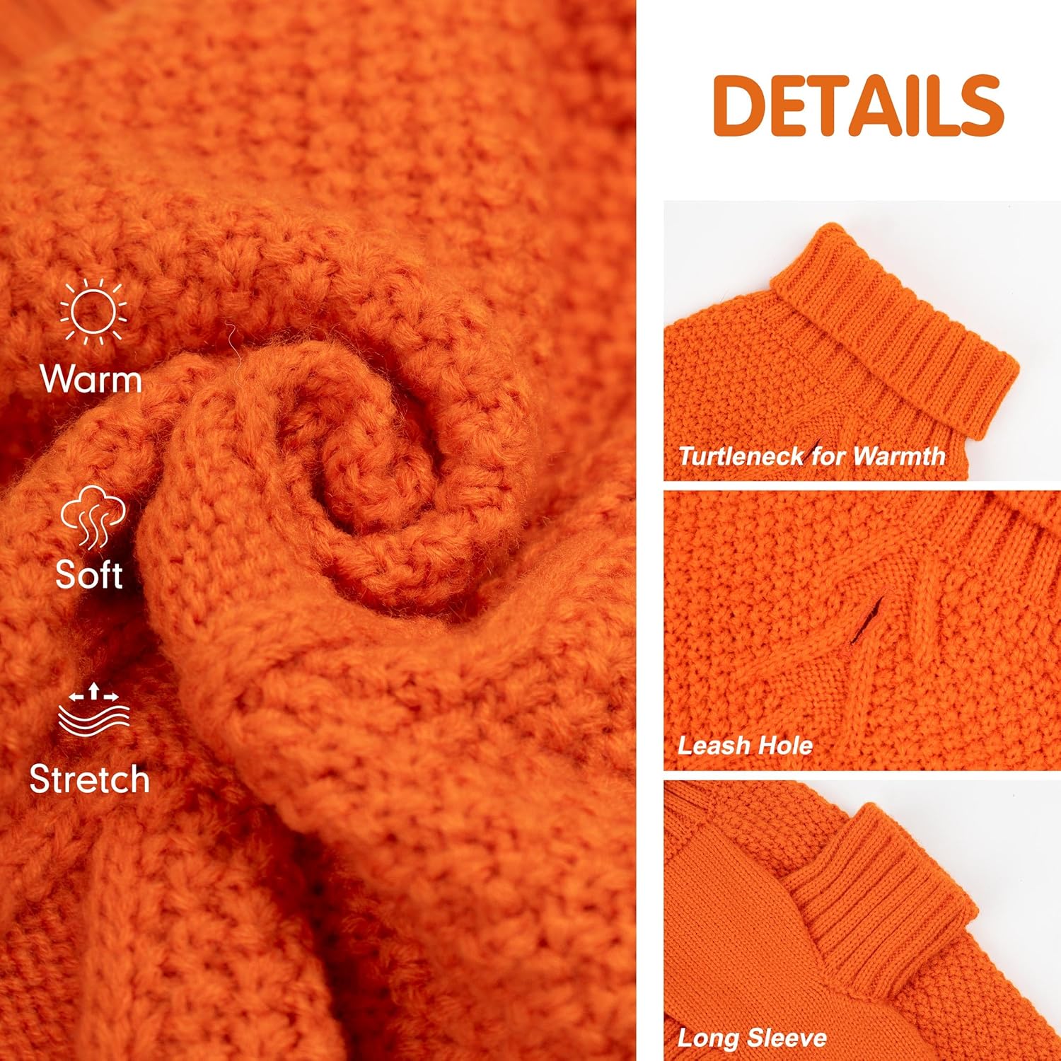 - Turtleneck with Sleeves: This dog sweater is stretchy and breathable, able to provide full coverage for your dog's neck, legs, and belly to keep warm in cold weather without restricting your dog's movement or causing them to overheat