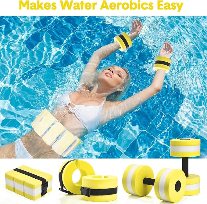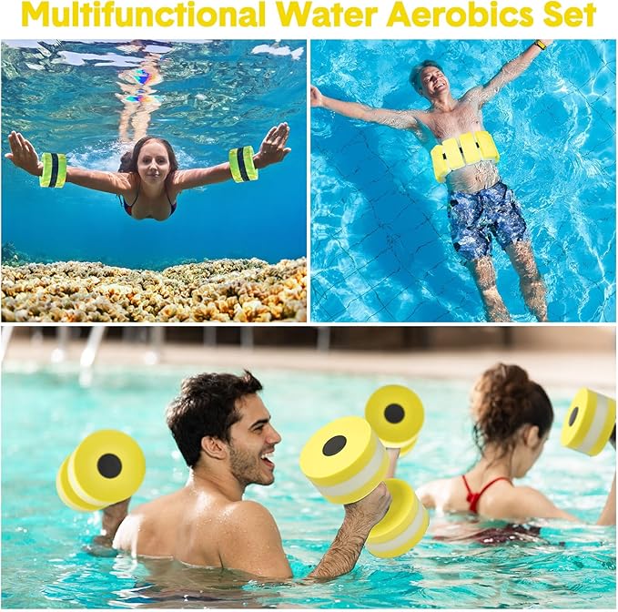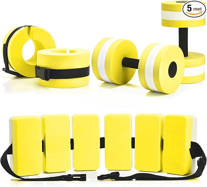 - Complete Package for Water Fitness: this water dumbbell set is a comprehensive package for your water workout regime, including 2 foam swim aquatic cuffs, 2 lightweight aquatic exercise dumbbells, 1 swim belt, which ensures a full body workout, improving your overall fitness