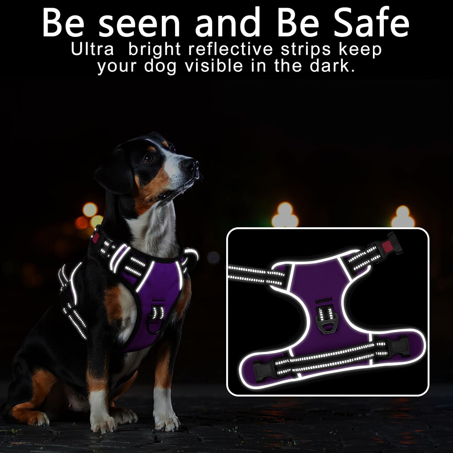 Timos Dog Harness Small Sized, No Pull with Neck Lockable Snap,No Choke Front Clip Dog Reflective Harness,Adjustable Metal Rings 3 Buckles,Easy Control Handle for Small Dogs Purple S