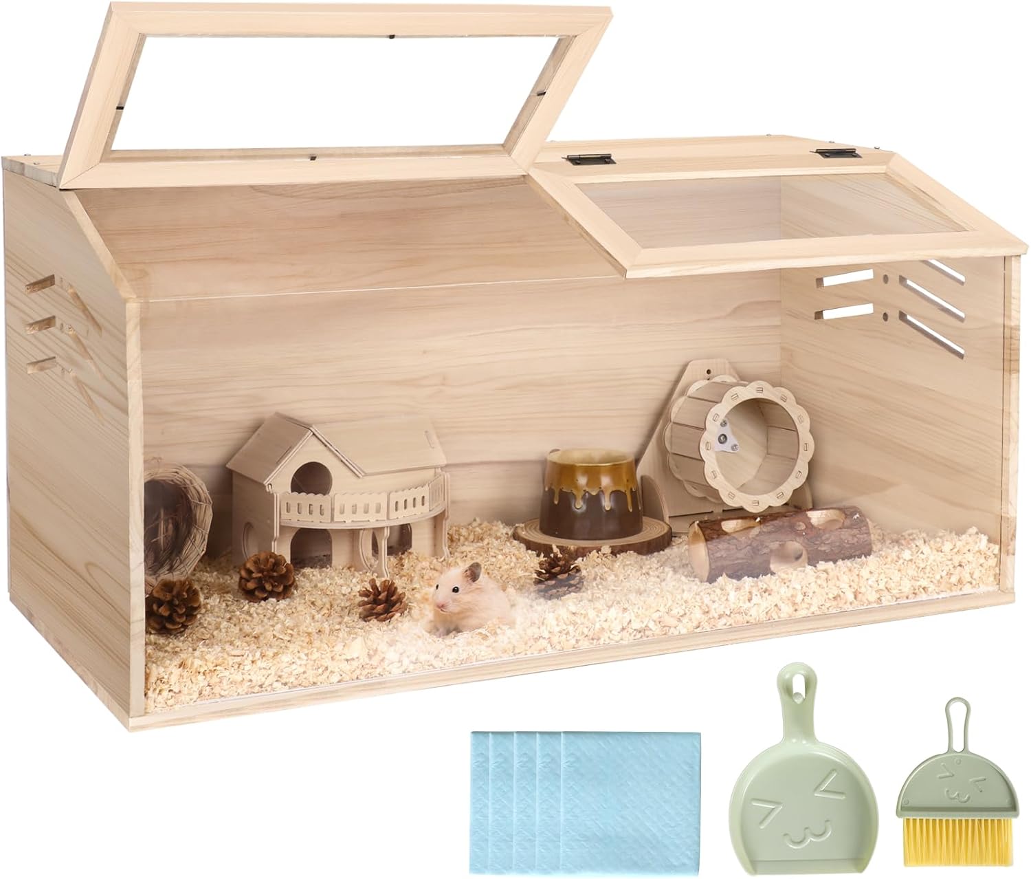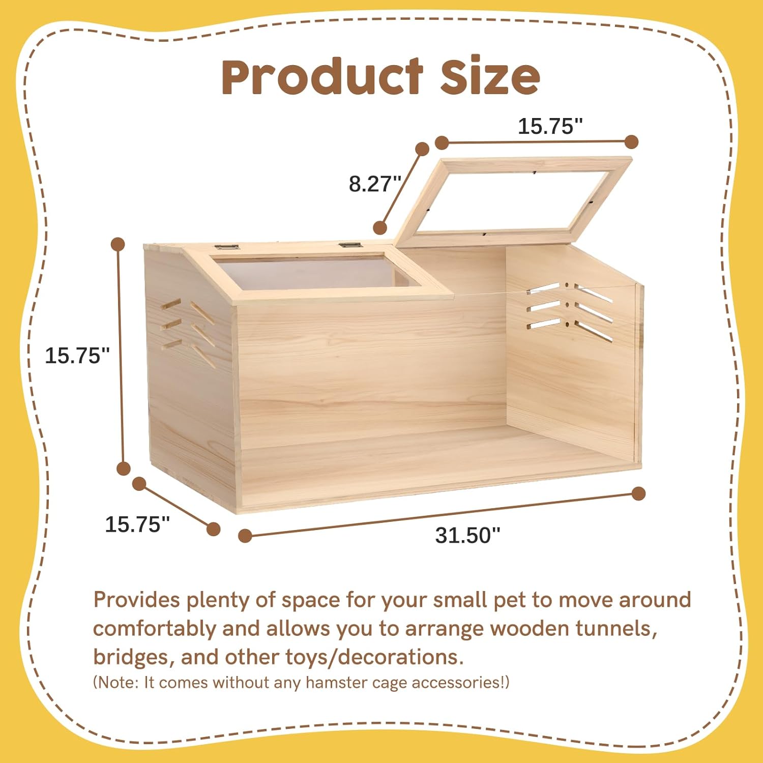 - Generous Space for Exploration --- This large wooden hamster cage measures 31.5" L x 15.7" W x 15.7" H, offering plenty of room for your small pets to roam and play. The spacious design encourages natural behaviors, ensuring that hamsters, gerbils, and other small animals have a comfortable and stimulating environment for their well-being.