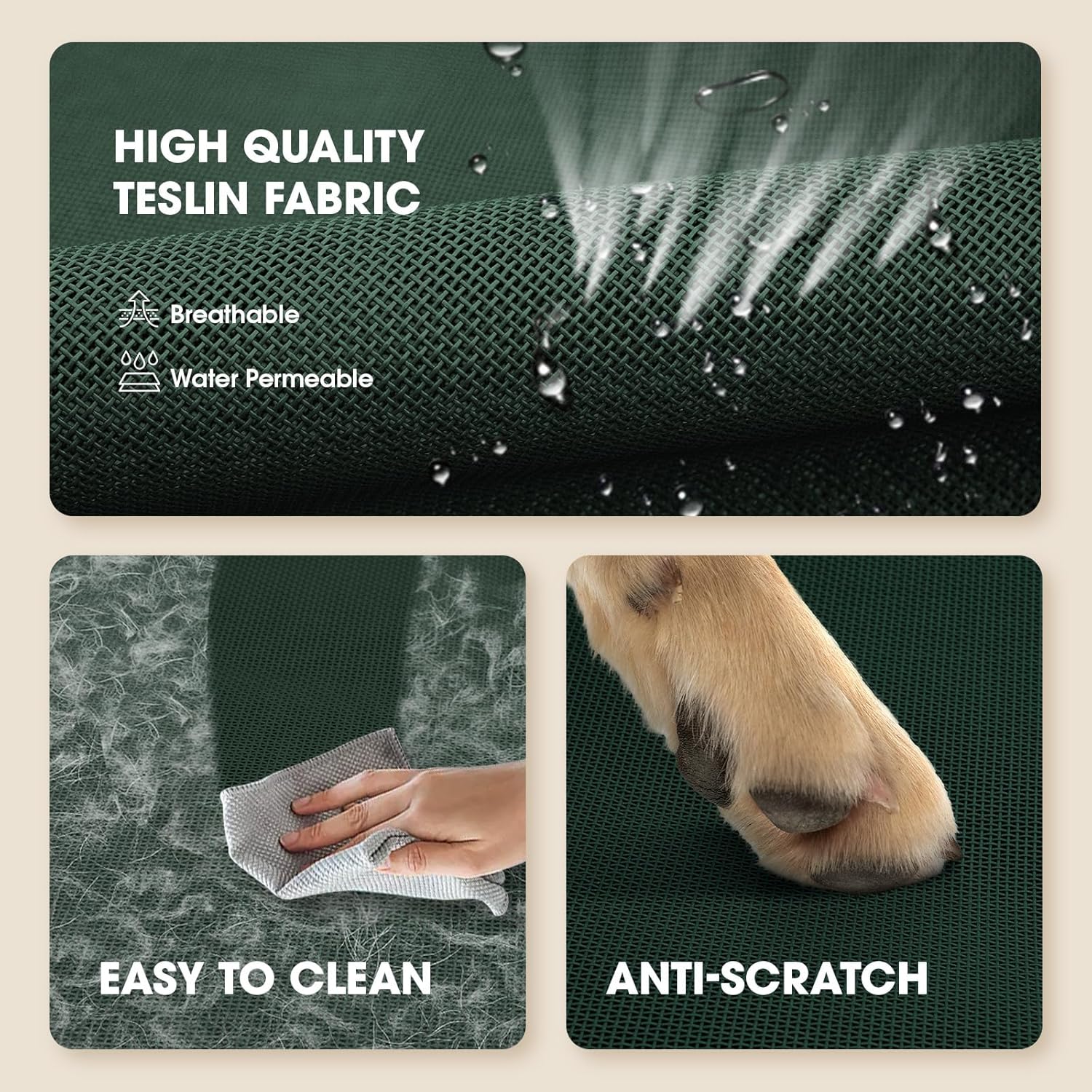 • 【Easy Care】This raised dog bed's mesh fabric is simple to clean, if the outdoor dog bed is soiled or dog hair etc., you just need to rinse the mesh with water and wipe the surface of the raised dog bed. ensuring your pet's sleeping area stays hygienic.