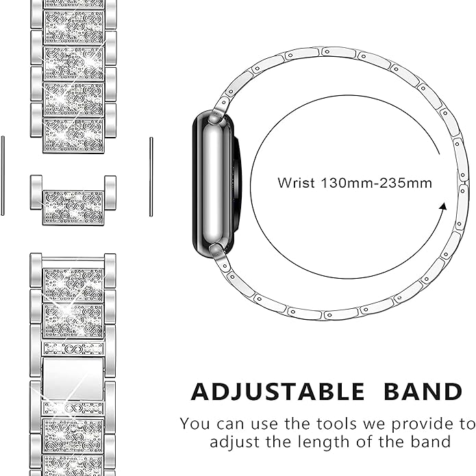 - Pretty Design: Set with eye-catching bling crystal, the sparkly metal band will make your watch receive many compliments, which is the best choice for watch decoration.