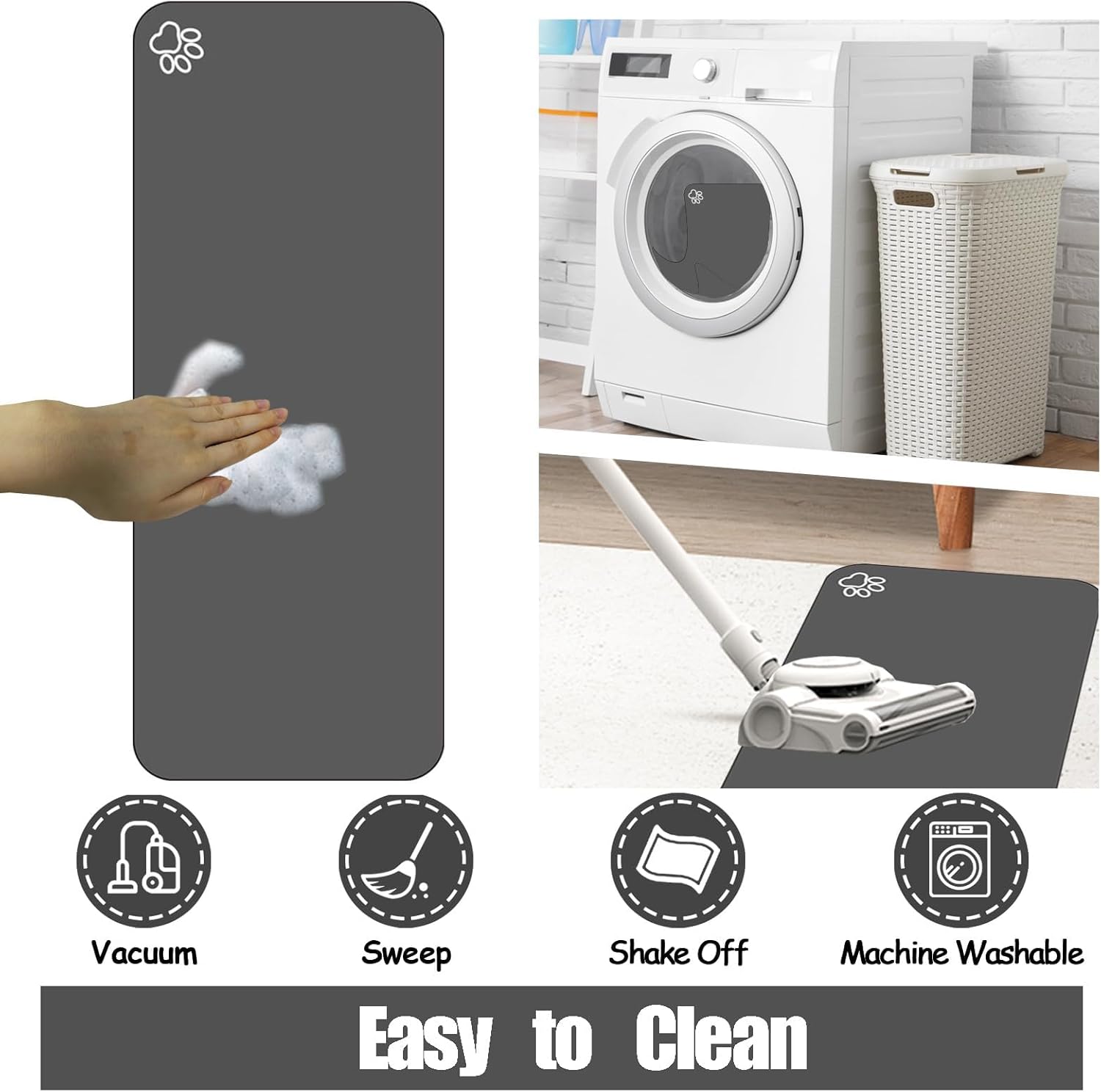 - Absorbent & No Stains: Perfect dog accessories.This dog food mat can stop water from overflowing. Super absorbent and quick-dry ability can avoid wetting pet paws even for messy drinkers. No marks will be left when food and water are dropped on the pet food mat. Good dog products to care your pet while reducing the times of cleanings.