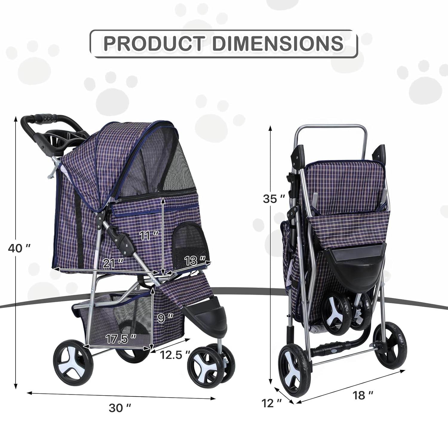- Durable and Comfortable - Made of tough Oxford cloth and able to hold up to 33 lbs, our dog stroller is not only water-resistant but also provides added comfort with a padded foam bottom that your furry friend is sure to appreciate.