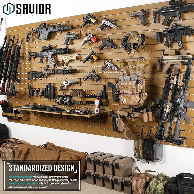 Savior Equipment Wall Rack System Heavy-Duty Steel Folding Table Workbench Shelf Collapsible Wall Mount Hanger, Modular Firearms Gun Wall Gear Accessories Organizer
