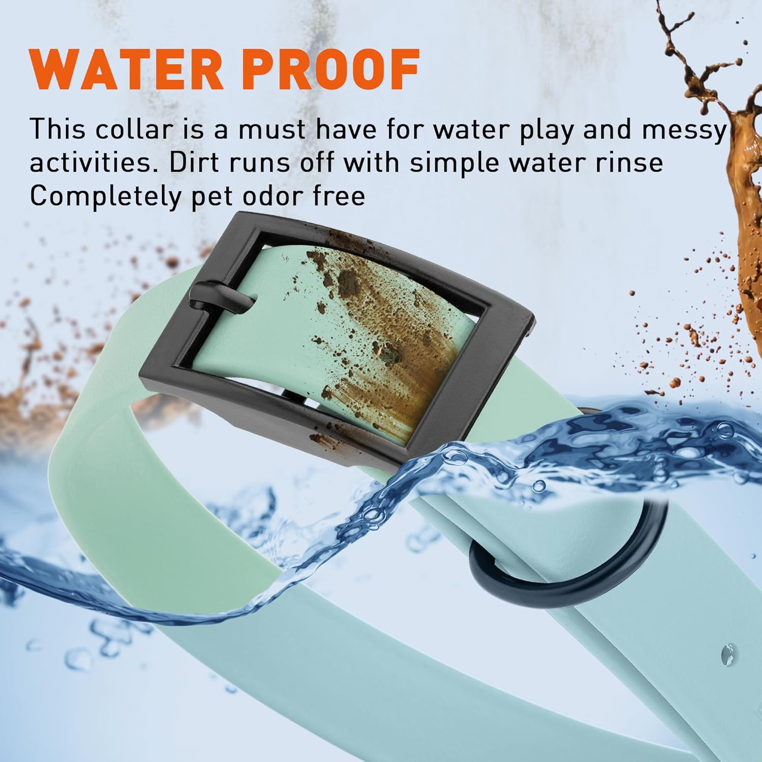 • Free Your Dog to romp in puddles and retrieve from lakes with the Dogline Biothane Waterproof Dog Collar. This water-repellent collar stays dry and odor-free, without shrinking or losing flexibility.