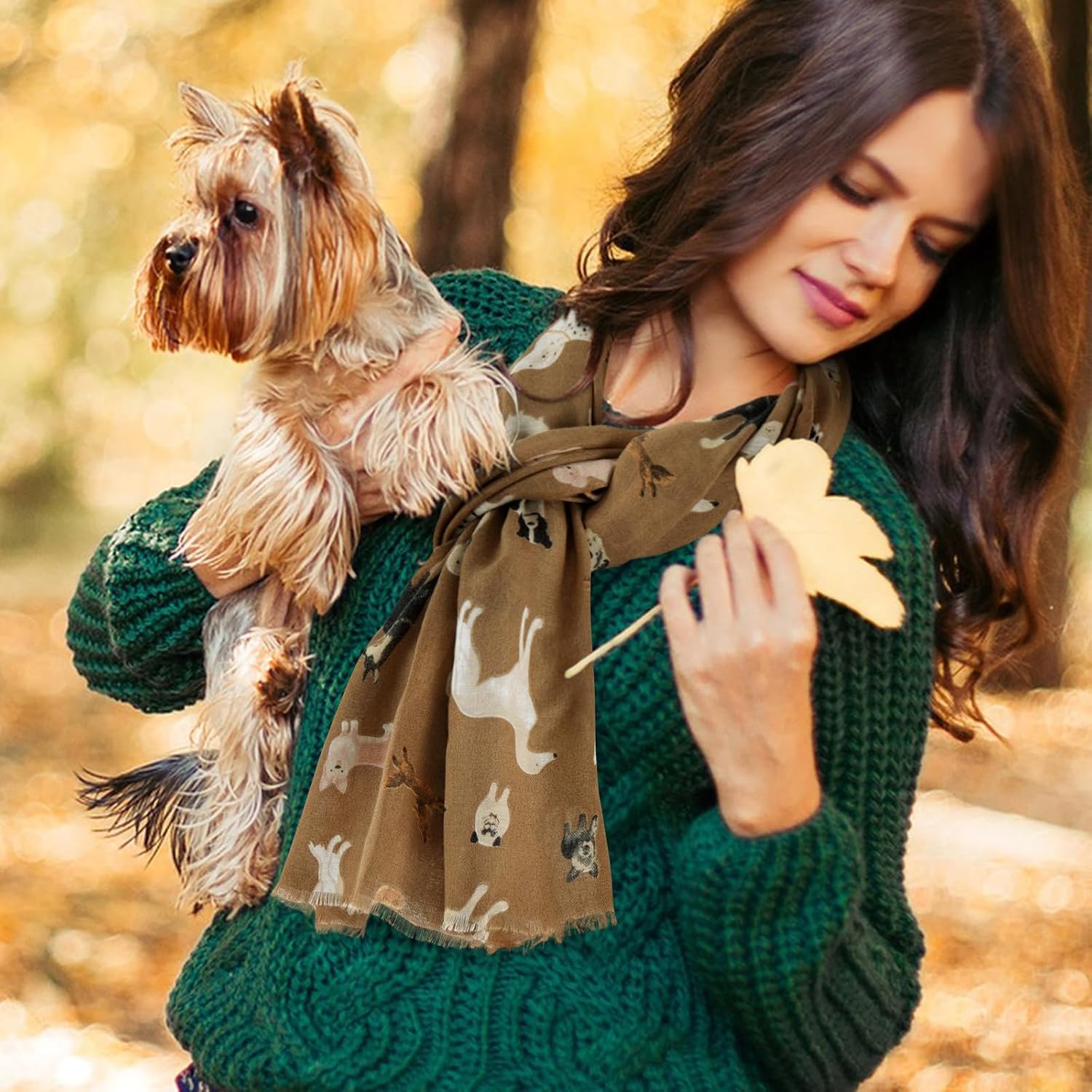 - Multipurpose:The dog scarves for women can mix and match for any type of Coat,Jacket,Blouse,Sweater,Shirt and Dress. Long scarf can be hijab, knotted ,twisted,wrapped or doubled around neck, shoulders and head