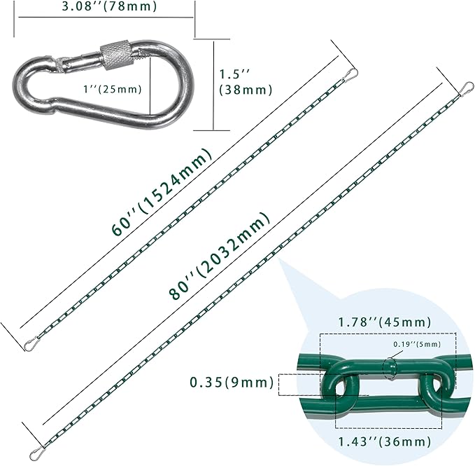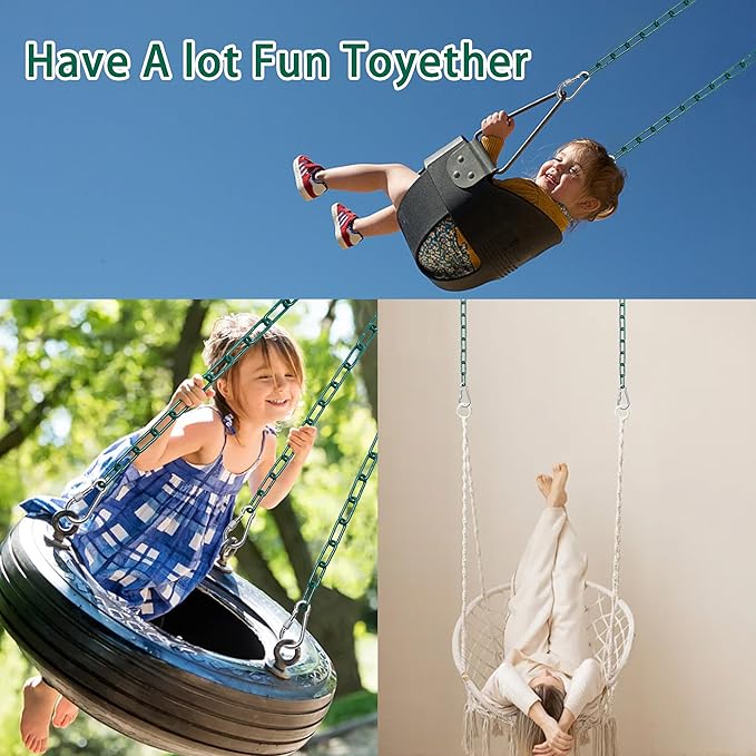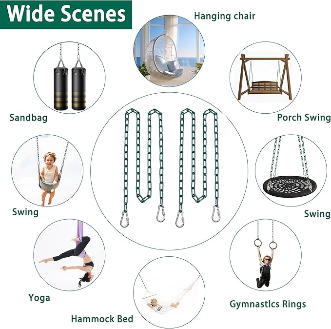 - Easy to Use: Designed for convenience, the green hanging swing chain comes with 4 Free Quick Links, ensuring a quick and straightforward installation process. Enjoy a hassle-free experience as you transform your space into a cozy retreat or workout haven