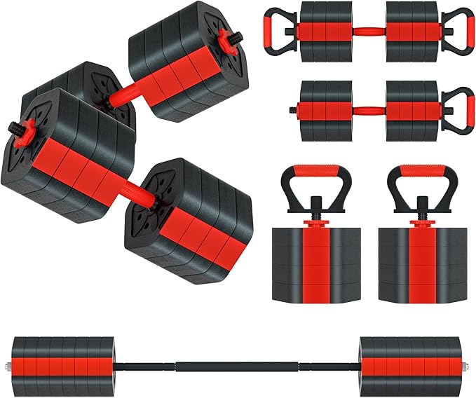 - Multifunctional Fitness Gear - Beyond being a dumbbell and barbell, and kettlebell, the Vivitory set doubles as a push-up board, grip trainer, and back training device. With easy assembly and disassembly, it eliminates the need for multiple fitness gadgets, saving you money and space