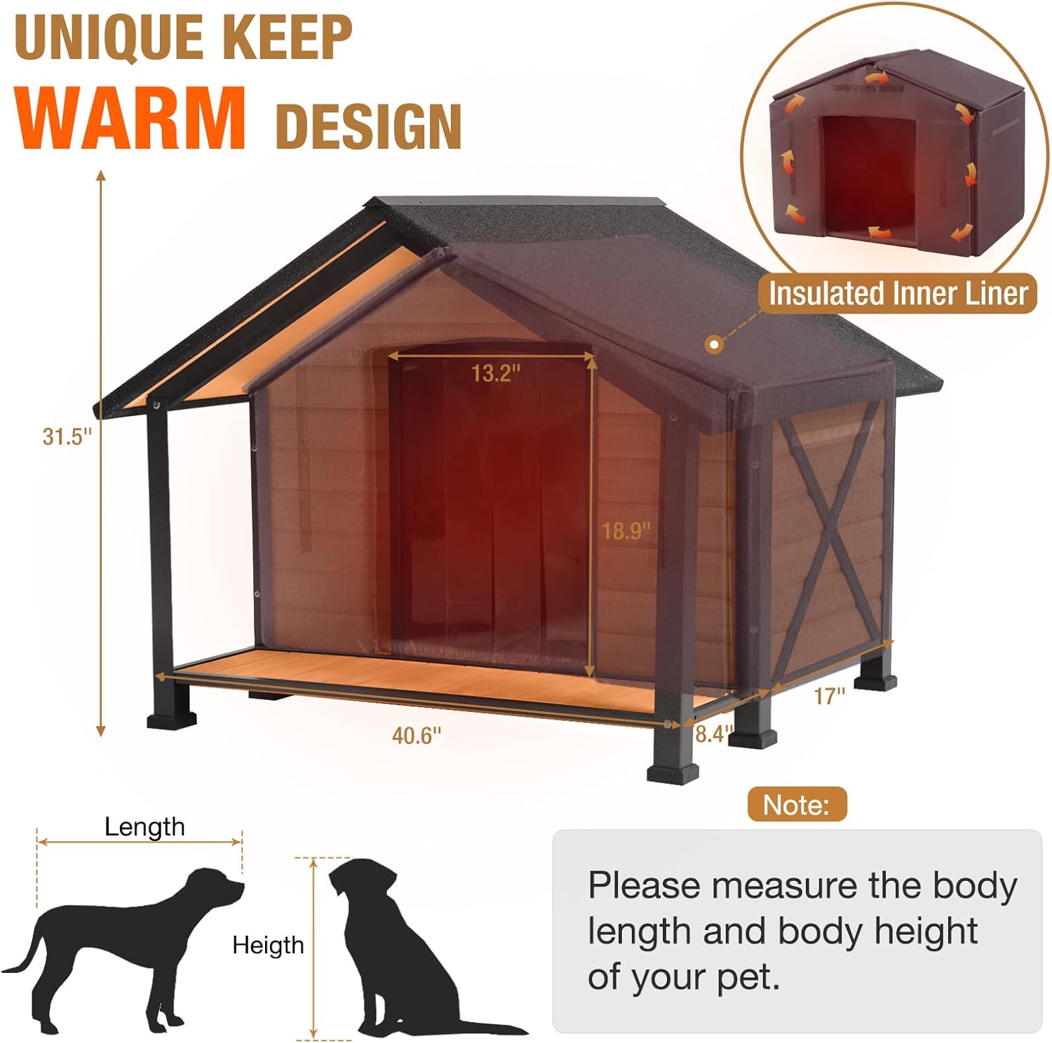 - 【For All Your Needs】The large dog house, a combination of wood, iron frame, and insulated liner, will be the highest configuration of the dog kennel. It makes your kennel strong and durable while staying warm and comfortable.