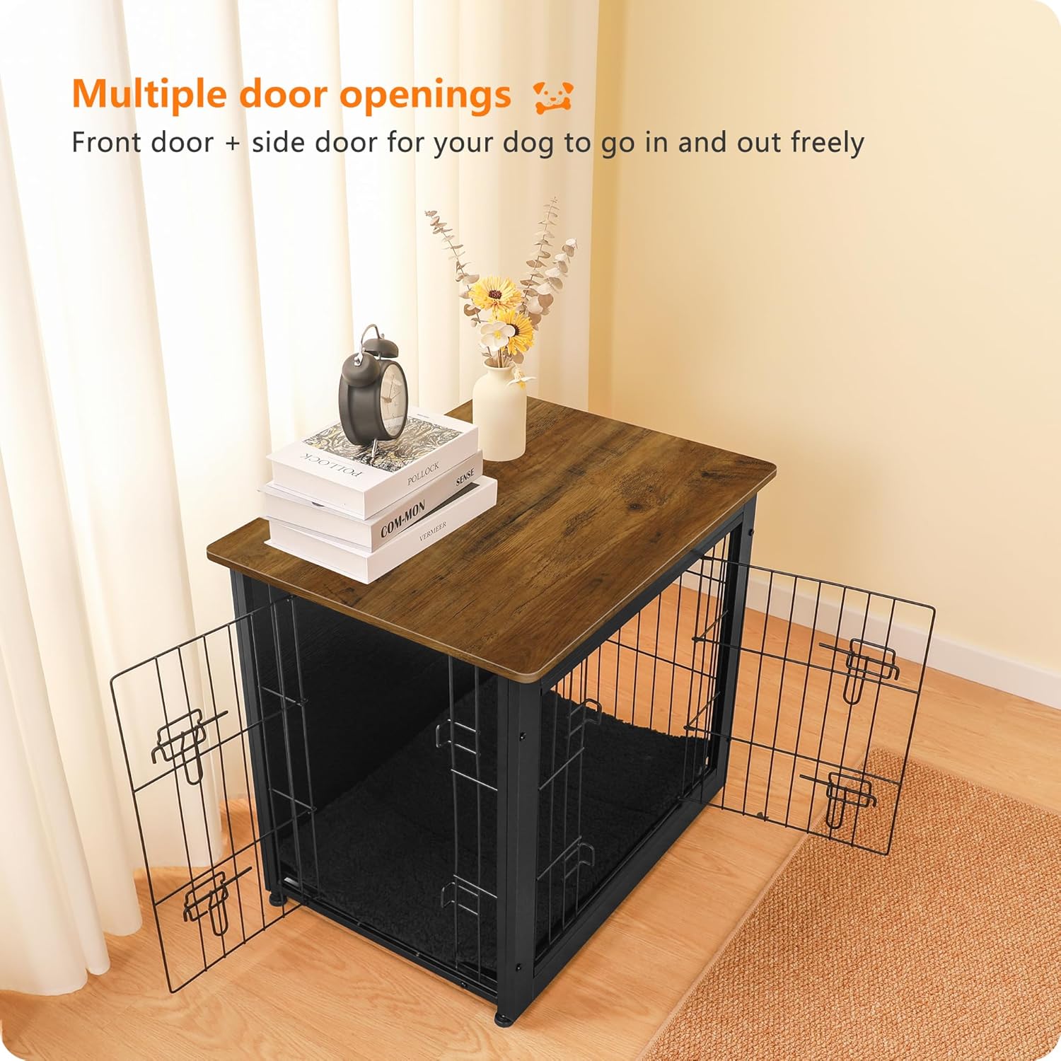 - 【Multi-functional】 This pet furniture can be used as pet crate ,also as a side table, end table or night stand.The wide top provides enough place to put some decorations such as small/medium plant, magazines, family picture frames and night lamps and so on.