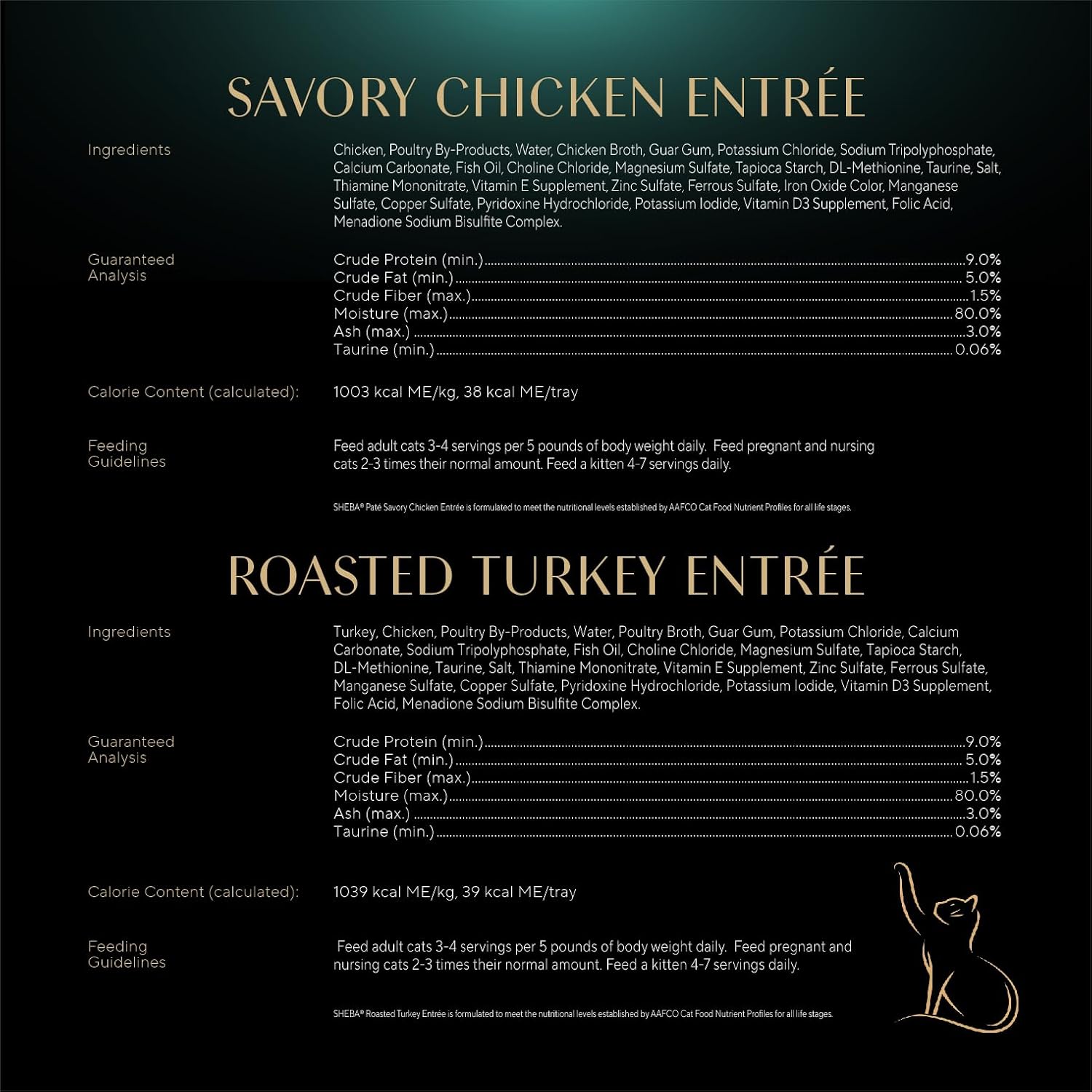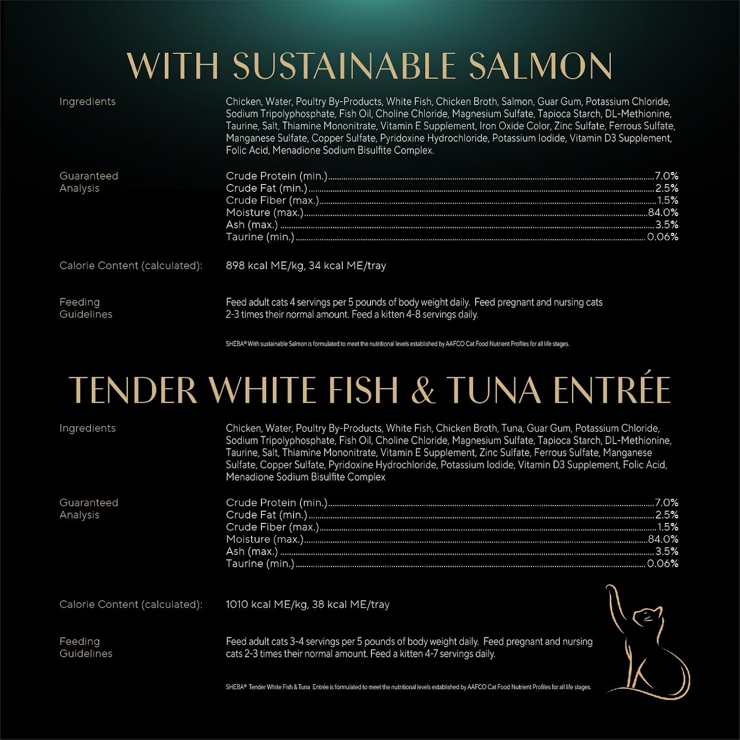 Sheba Perfect Portions Wet Cat Food Pate Savory Chicken, Roasted Turkey, with Sustainable Salmon, and Tender Whitefish & Tuna Variety Pack, 2.6 oz. Twin-Pack Trays (48 Count, 96 Servings)