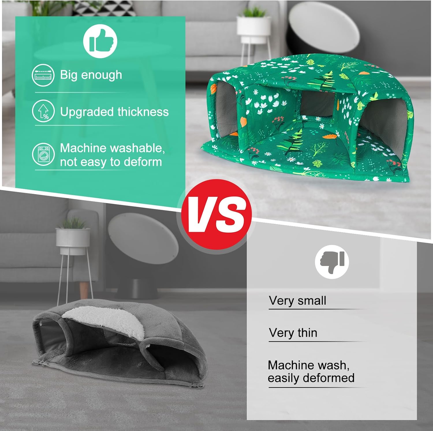 - Machine Washable: The guinea pig hideout is made of short plush and high-density elastic sponge; Not only is it very soft to the touch, but also more comfortable and warm, the fabric is thick enough to hold its shape and stay upright after many washes
