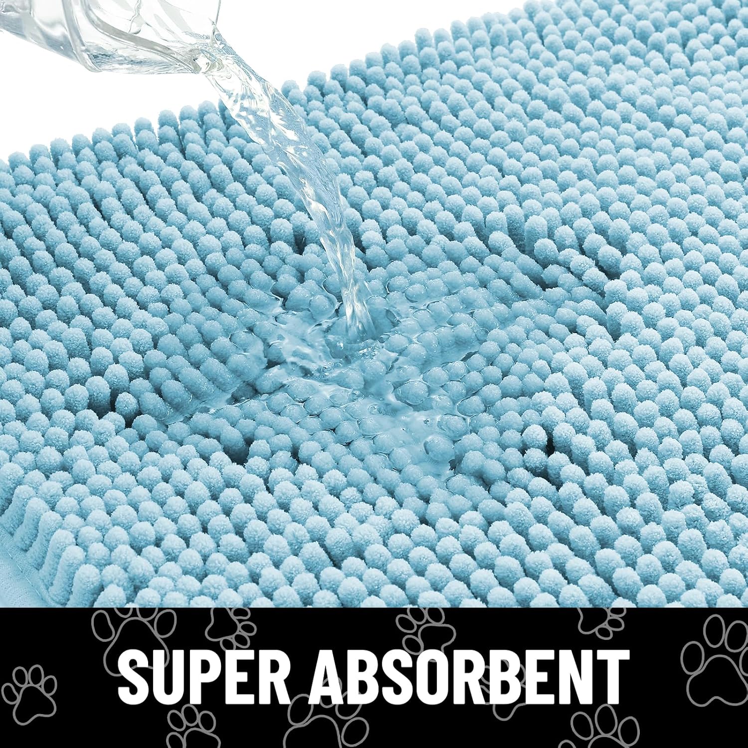 Smiry Dog Door Mat for Muddy Paws, Absorbent Dirt Trapper Non Slip Quick Dry Washable Chenille Mat for Mud Dogs, Entry Rug for Indoor and Outdoor (24x16 Inches, Sky Blue)