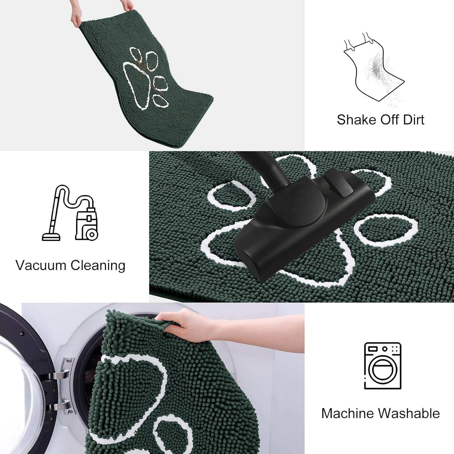 Smiry Dog Door Mat for Muddy Paws, Absorbent Dirt Trapper Non Slip Quick Dry Washable Chenille Mat for Mud Dogs, Entry Rug for Indoor and Outdoor (47x24 Inches, Green)