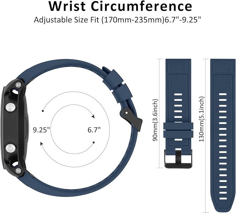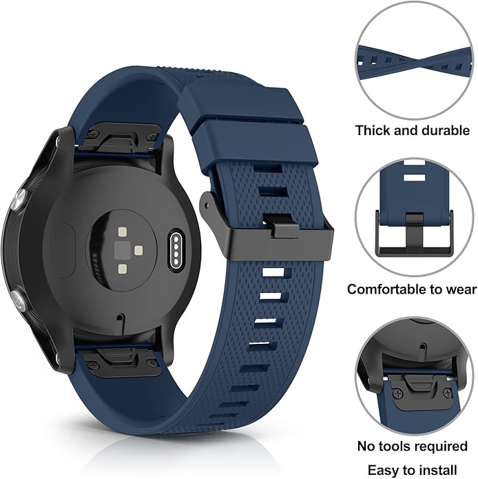 Meliya Silicone Sport Bands for Fenix 7/7 Pro/6/6 Pro/5/5 Plus, 22mm Quick Fit Strap for Forerunner 965/955/945/935/745/Approach S70 47mm/S62/S60/Epix 2/2 Pro 47mm Smartwatch (Navy Blue)