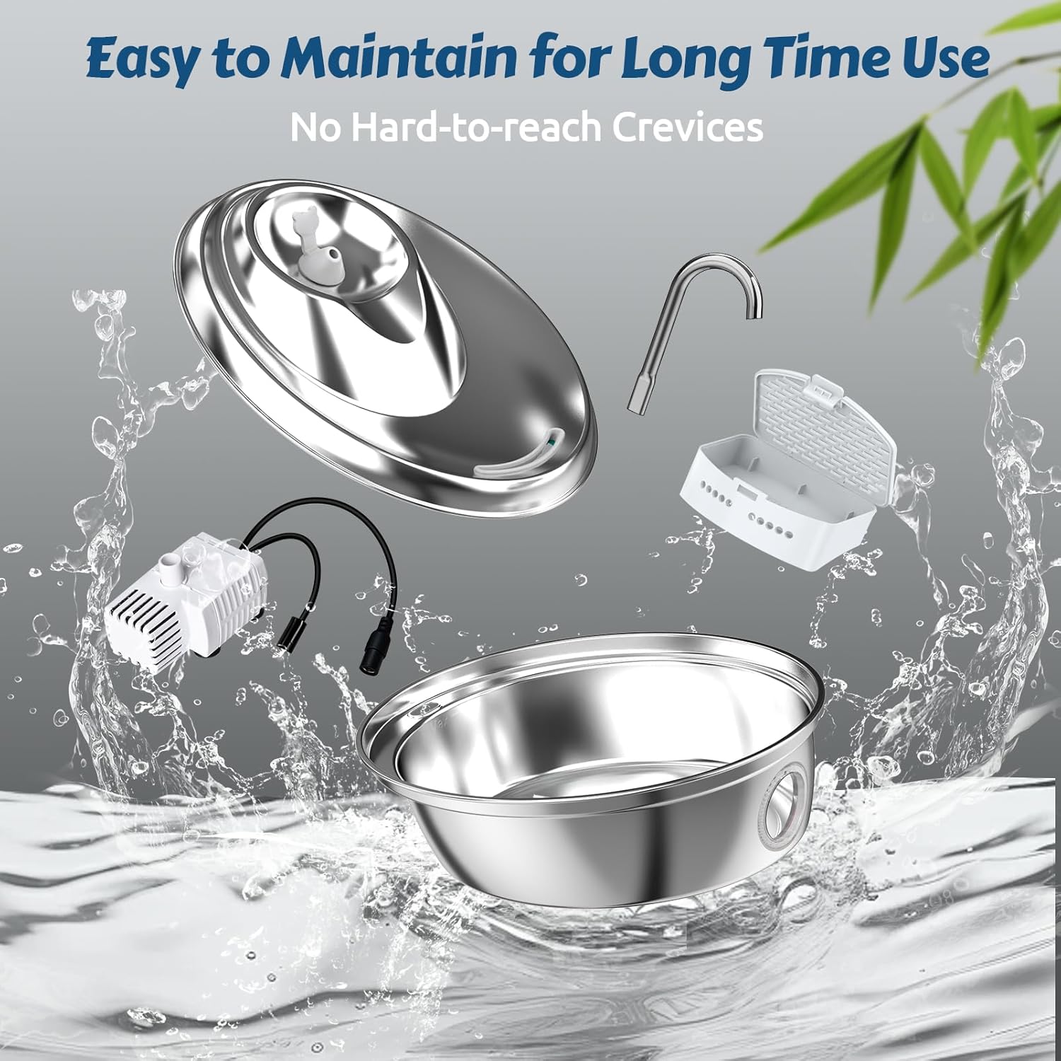 - 😽【Upgraded 304 Stainless Steel Visual Pet Fountain】ORSDA Upgraded 3L/118oz with LED water level window, which help you clear view into your pets drinking. SUS 304 food-grade stainless steel cat fountain provides with hygienic and clean water for your fur babies.Helps ward off the chin acne.