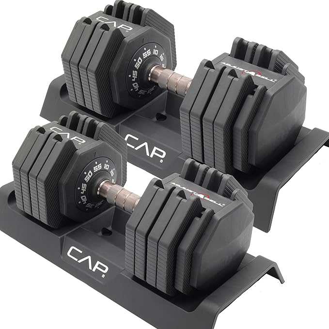 CAP Barbell ADJUSTABELL Adjustable 55 lb Hex Dumbbell Weights - Singles & Pairs | Multiple Handle Options
