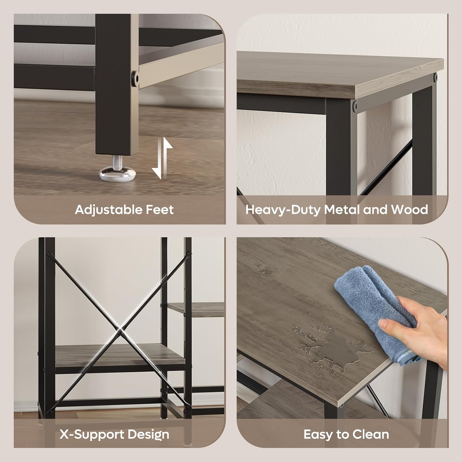 - Heavy-Duty & Stable Construction: Built with sturdy metal and P2-grade engineered wood, supported by 6-legs and X-shape reinforcement, ensuring stability and a weight capacity of up to 400 pounds