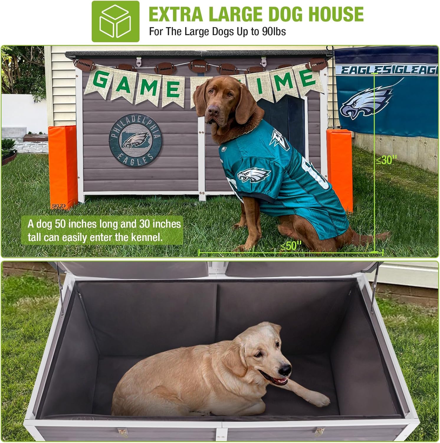 GUTINNEEN 59.1" Extra Large Dog House Outdoor Insulated for Winter with Durable Metal Fame, Grey