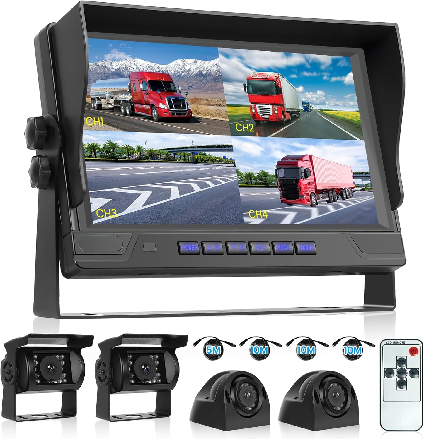 RV Backup Camera System 1080P, Hodozzy 9 Inch 4 Split Screen Monitor System, Waterproof 4 Reverse Cameras Night Vision Reversing Camera Kit for Car Truck/Trailer/Bus Truck/RV, DVR Loop Recording
