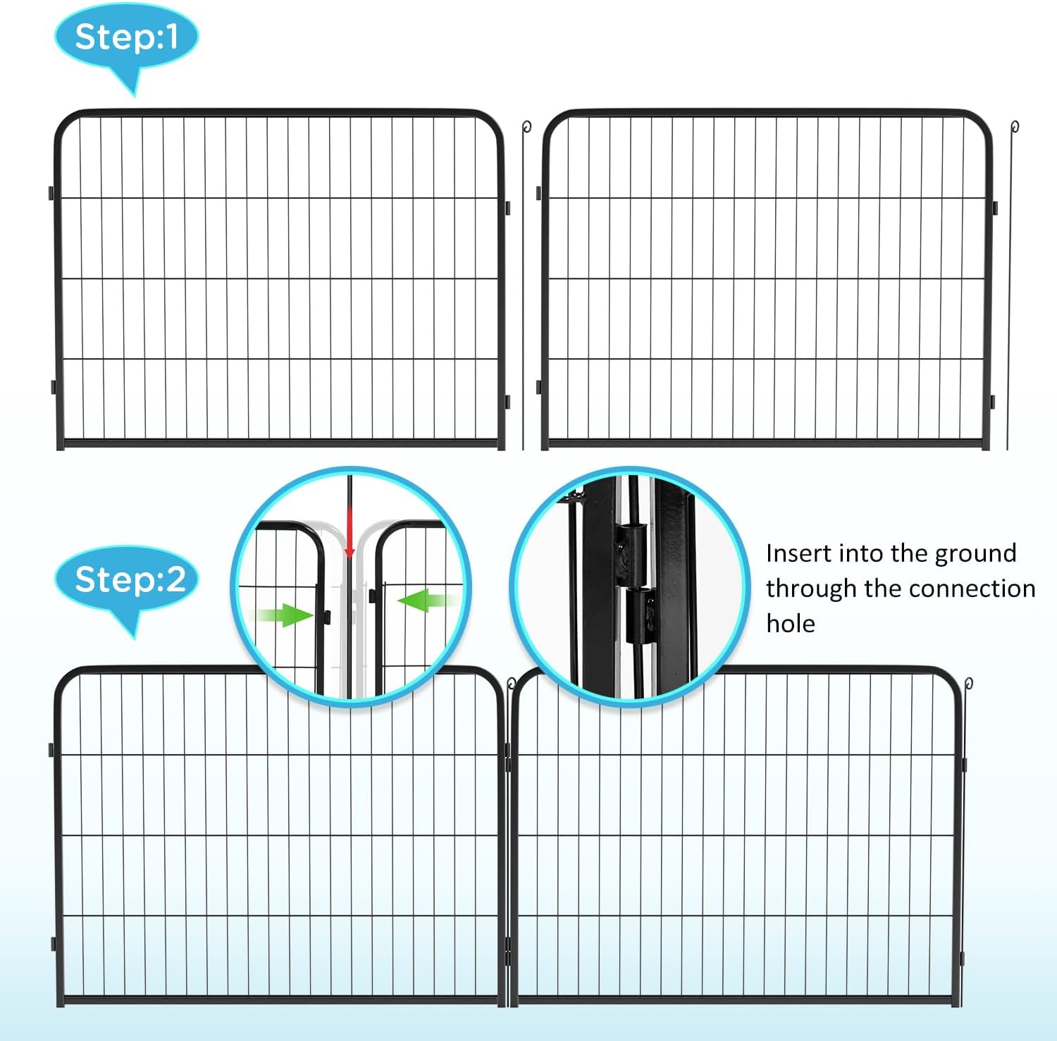 - DURABLE METAL FENCE PANELS: Heavy-duty iron with a rust-resistant finish makes this fence strong and secure. Use the sturdy fence panels as a dog fence outdoor for yard or indoor setup.