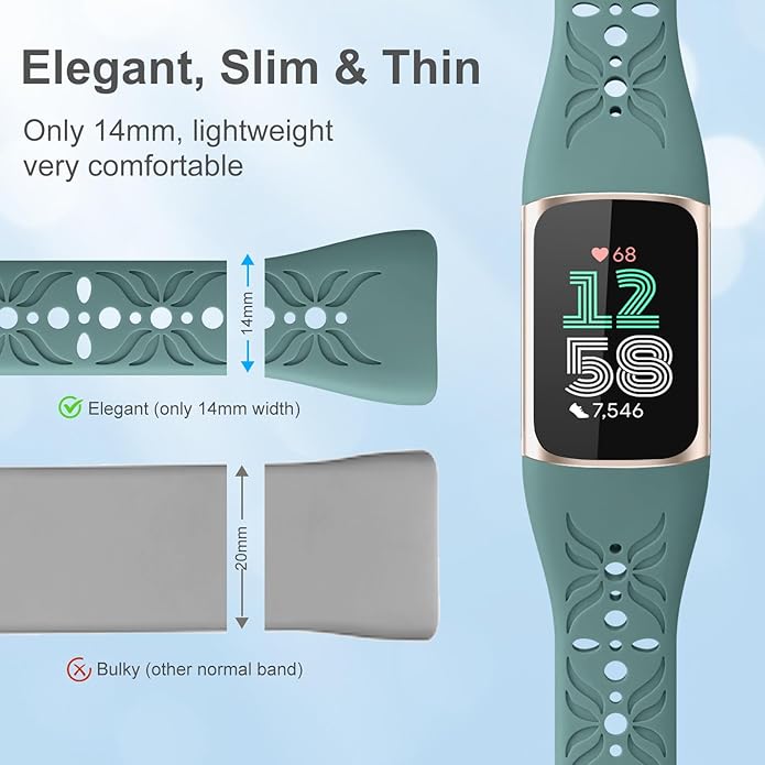 - Super Pretty Pattern Design: Our slim bands for Fitbit Charge 5/Charge 6 woman are engraved with romantic & elegant boho pattern, but not common floral, suitable for both women and men. The fancy cut-out straps are just like exquisite art, making you stand out in the crowd