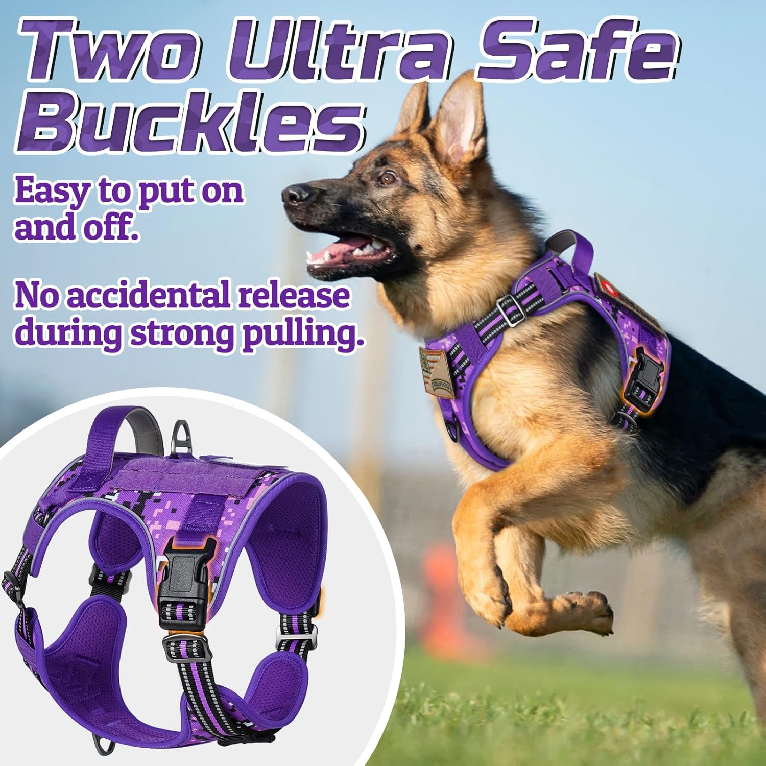 rabbitgoo Tactical Dog Harness Medium Sized Dog, No Pull Military Service Vest with Handle & Molle, Easy Control for Training Walking, Adjustable Reflective Straps, Purple Camo, M