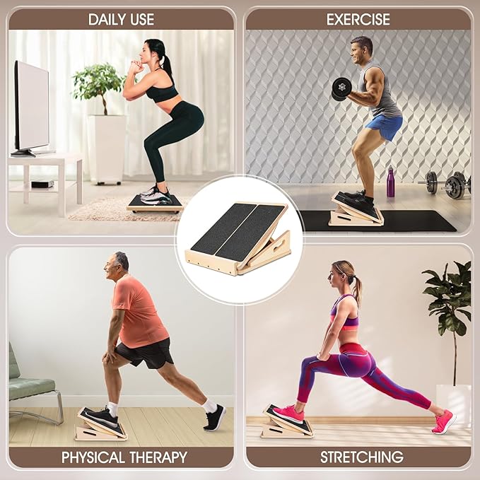 - Adjustable Slant Board: The board transitions effortlessly into a slant board, offering even more workout options. With four adjustable incline positions, it caters to your specific fitness needs, whether it's core strength improvement, calf stretching, or pre/post-workout stretching.