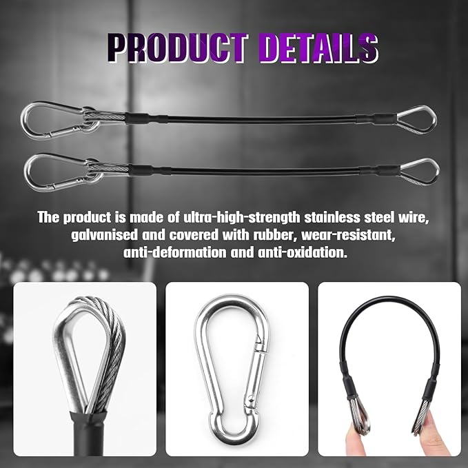 - Premium Quality & Durability: Crafted from high-grade materials, our thick and stable fitness equipment extension cords are built to withstand intense workouts. The robust construction ensures long-lasting performance, maintaining tension and stability throughout your exercises. Experience peace of mind knowing that these cables have undergone rigorous testing to meet the high standards of quality and safety for your home gym setup