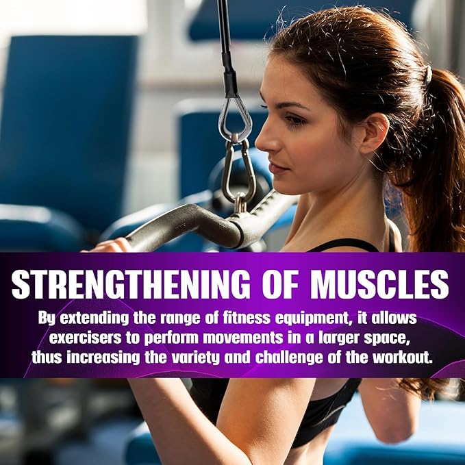 - Easy Installation & Comprehensive Kit: Our gym extension kit includes 2 extension cables and 2 carabiners, providing everything you need for a quick and hassle-free installation. The user-friendly design allows for easy attachment to your existing equipment, enabling you to start benefiting from improved workout angles immediately. No special tools or technical expertise required – simply connect and start exercising with enhanced efficiency and comfort