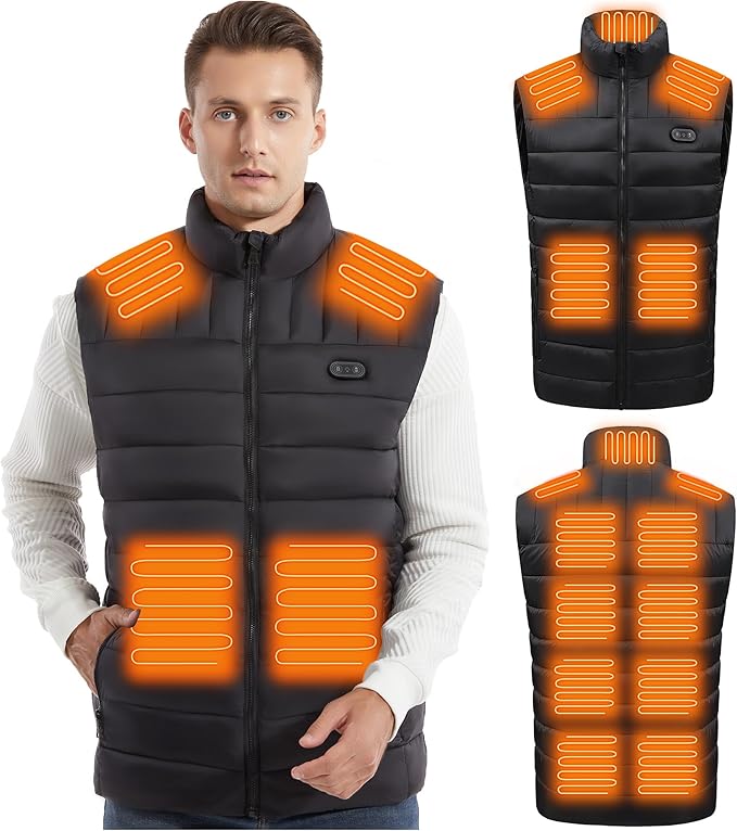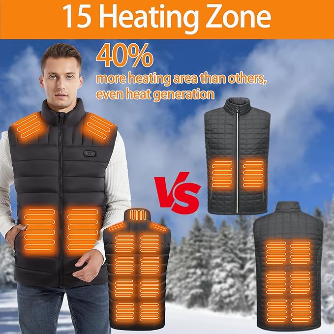 - 【2024 Newest Heated Vest】Equipped with the latest heating technology, featuring 15 high-efficiency carbon fiber heating zones for comprehensive and uniform warmth. The upgraded design targets key areas like the neck, back, abdomen, and waist, providing maximum comfort in cold outdoor conditions. Designed for a comfortable fit, allowing free movement without any discomfort or restriction.