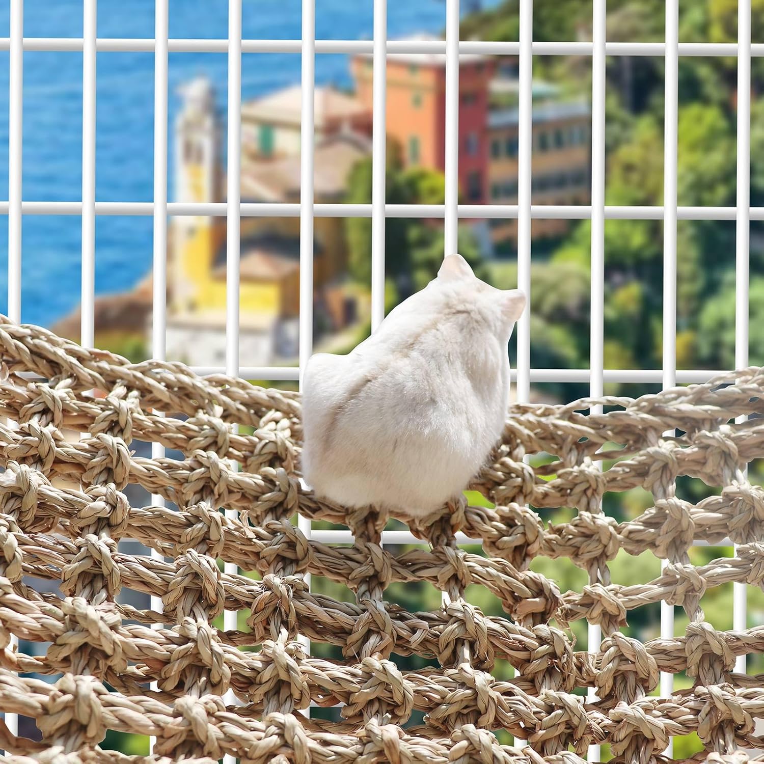 Rat Climbing Toys, 39 x 7 inch Small Animals Seagrass Mat Toy, Cat Climbing Toys, Natural Seagrass Woven Net Hammock with Hooks, Cage Accessories for Hamster Guinea Pig Parrot Parakeets Cockatiels