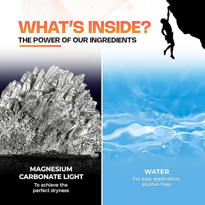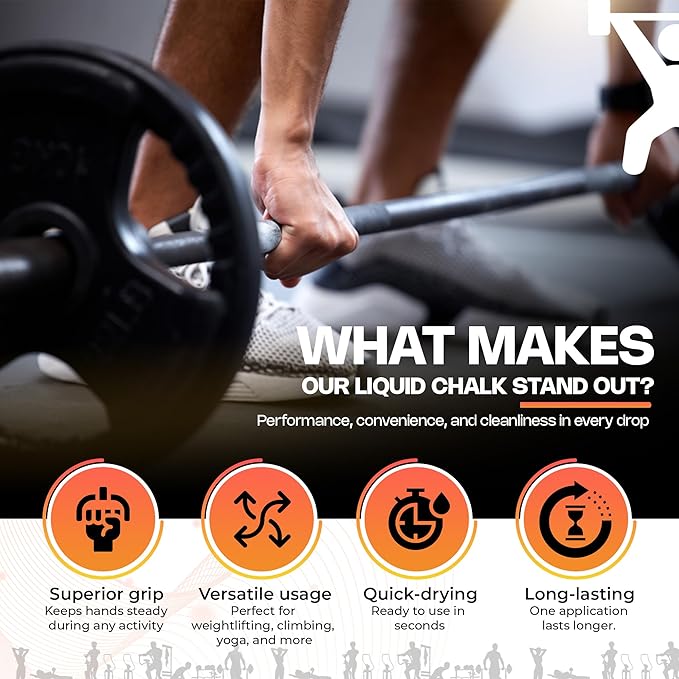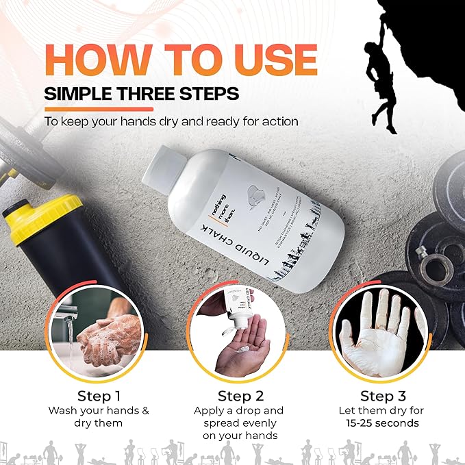 - Mess-Free Application: Say goodbye to the mess and hassle of traditional chalk! convenient Liquid Chalk allows for precise application without any residue or chalk dust. Simply squeeze in your hand and apply a small amount to your palms, rub them together, and experience the effortless glide that. Liquid Chalk offers a mess-free alternative, providing superior grip and performance for athletes in various fields, from powerlifting to climbing and gymnastics.
