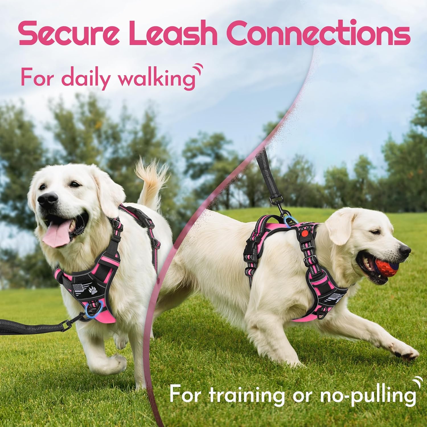 Eagloo Dog Harness for Large Dogs, Easy Wearing with 3 Buckles, Adjustable No Pull Pet Harness with 2 Rings for Walking, No Chock Reflective Soft Padded Vest with Control Handle, Pink & Black, L