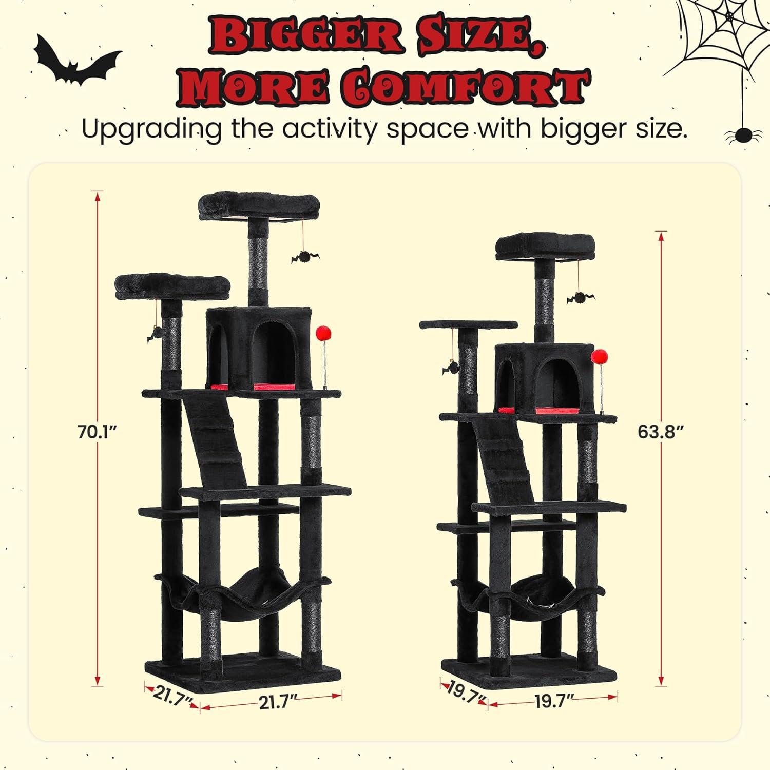 MWPO Gothic Large Cat Tree, 70.1-Inch Multi-Level Tall Cat Tower for Indoor Cats, Plush Cat Condo with Big Padded Perches, Sisal-Covered Scratching Posts, Hammock, Toys for Kittens & Cats, Black
