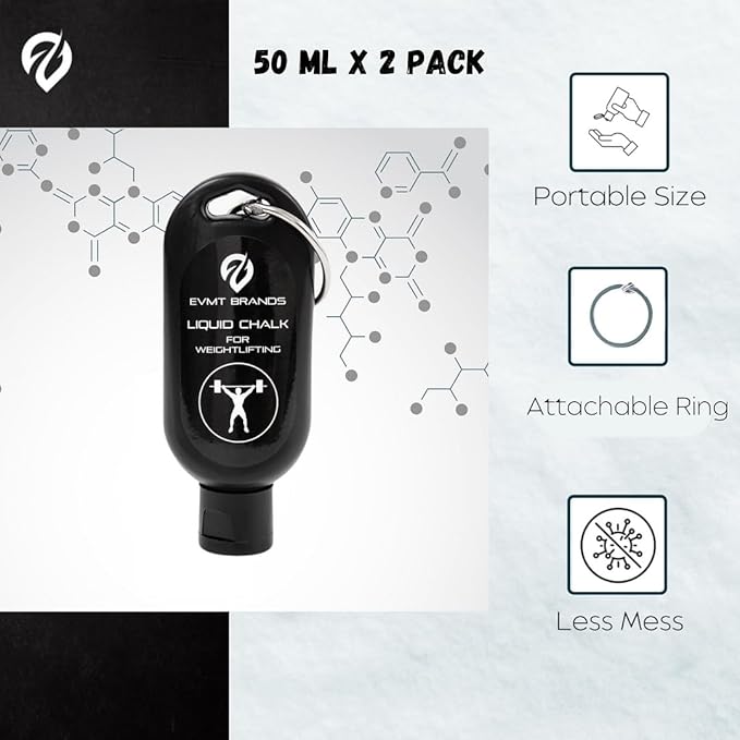 • High-Friction Weightlifting Liquid Hand Chalk – Sweat-resistant magnesium carbonate formula in a quick-drying, mess-free liquid designed to improve grip and control on barbells, kettlebells, and pull-up bars during strength training.