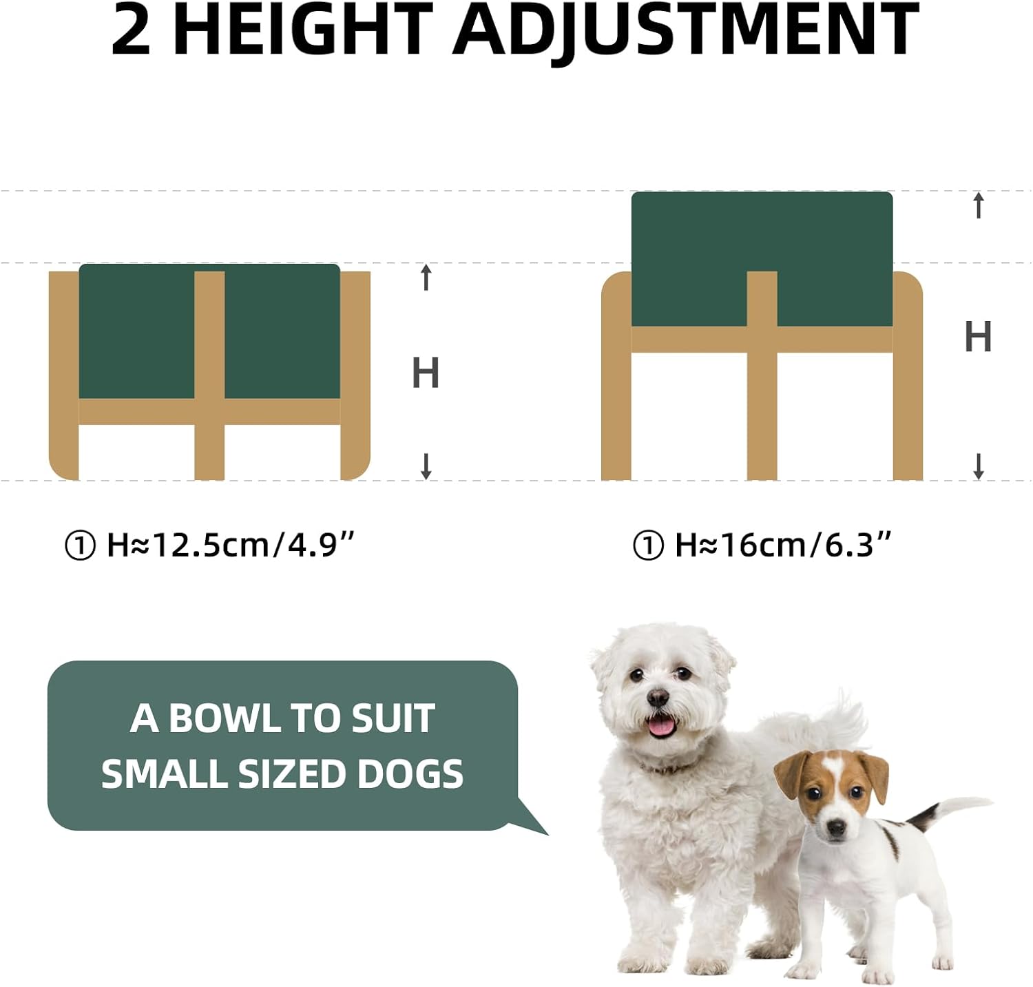 Ceramic Raised Dog and Cat Bowl Set, 2 Heights Elevated Stand, Food and Water Bowl for Small Breed Dogs, Weighted Dog Dishes, Pet Bowl(6.1'',28.7oz, Green)