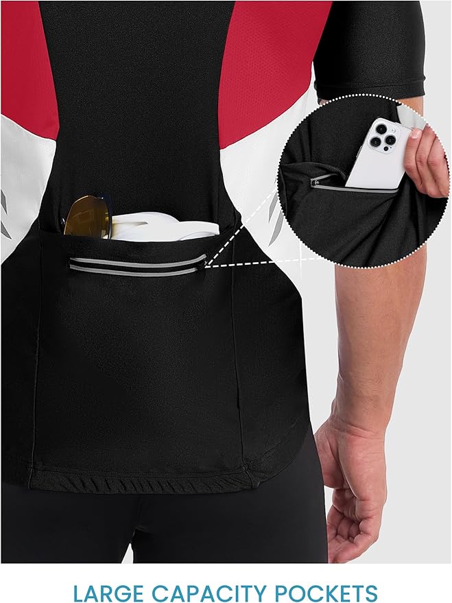 - UTILITY POCKETS: 3 open rear pockets and 1 zipper rear pockets to hold your items like cards, smartphone and hand towel when cycling or running
